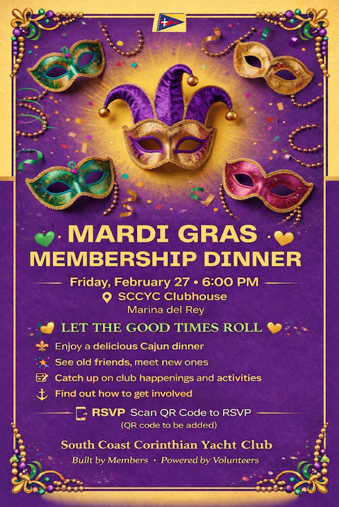 Welcome to South Coast Corinthian Yacht Club, a small, friendly, volunteer-run club located in Marina Del Rey, CA. Established in 1932, SCCYC is the oldest club in the marina, embodying the corinthian spirit, its mission to promote boating in all forms, with racing, cruising, and social events throughout the year.